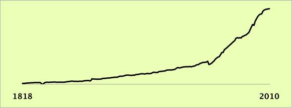 Lineares, exponentielles und hyperbolisches Wachstum Auf lange Sicht ist ein solch stürmisches Wachstum unrealistisch. Nach 1970 geriet die Entwicklung der Wissenschaftsressourcen denn auch in ein Missverhältnis zu den Basisgrössen Bevölkerung und Wirtschaftsleistung, die sich in gemächlicherem Tempo entwickelten. Kölbel sieht hier das strukturell bedingte «Ende des Ressourcenwachstums». Die Personalentwicklung an der Universität Basel im 19. und 20. Jahrhundert verlief etwas langsamer als der deutsche Gesamttrend. Der Bestand an ordentlichen und ausserordentlichen Professoren wuchs nicht ganz exponentiell, die Zuwachsrate war nicht ganz konstant, die Verdoppelungsfrist verlängerte sich leicht. Zwischen 1840 und 1879 verdoppelte sich der Bestand in 39 Jahren, zwischen 1879 und 1922 in 43 Jahren, bis 1966 in 44 Jahren.