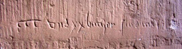 Im Fensterrahmen finden wir einen Schriftzug: «ccc und xx bücher sind in der ...». Leider ist er nicht mehr vollständig zu entziffern. Er nennt den Bücherbestand, der zu jener Zeit im Münstersaal vorhanden war.