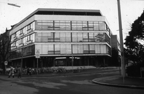 1896 erhielt die Bibliothek schliesslich ein eigenes Gebäude, den von Emanuel La Roche entworfenen grossen Prachtsbau auf dem Areal des ehemaligen Spalengottesackers. Bereits vor dem Zweiten Weltkrieg plante man einen weiteren Neubau, dessen Realisierung dann auf unbestimmte Zeit verschoben wurde. Als Ersatzlösung beschloss der Grosse Rat die Unterkellerung des Büchermagazins und weitere Umnutzungen. In den Jahren 1959-1965 wurden dann aber die Neubaupläne umgesetzt und es entstand in mehreren Bauetappen der von Otto Senn entworfene Neubau. Dabei musste das repräsentative und charakteristische Eingangskuppelgebäude dem sachlich gestalteten Neubau weichen.