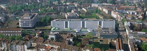Spitalbau und Herausforderungen des 20. JahrhundertsZu Beginn des 20. Jahrhunderts stiessen die räumlichen Erweiterungen des Bürgerspitals endgültig an ihre Grenzen. Grundlegende und das Problem an seiner Wurzel anpackende Lösungen waren gefragt. Die beiden Oberärzte Prof. de Quervain und Prof. Stähelin forderten daher im Jahre 1917 in der Druckschrift «Spital und Klinikenprobleme Basel» den Neubau des Bürgerspitals auf dem Areal der Milchsuppe. Das Projekt mit insgesamt 1200 Krankenbetten scheiterte jedoch an den zu hohen Kosten. Ein weiters Projekt aus den 1920er Jahren, das die Ausgliederung des Pfrundhauses aus dem Spital und als neuen Standort das Milchsuppenareal vorsah, hatte ebenfalls keine Chance. Eine Lösung des Spitalproblems musste jedoch dringend gefunden werden. Daher beauftragte man im November 1935 eine vierköpfige Baukommission damit, ein neues Projekt auszuarbeiten. Die Verlegung des Spitals an einen neuen Standort wurde aus Kostengründen ziemlich schnell fallen gelassen. Bezüglich des Projekts «Neubau» sah die Sache jedoch anders aus, wie aus einem Brief des Spitaldirektors G. Moser vom 10. Dezember 1937 klar ersichtlich wird: «Eine Modernisierung unserer Anstalt ist nur durch einen Neubau möglich. [...] Die ungenügenden Verhältnisse für unsere Patienten sind bekannt (Abtritte, Bäder, keine Tagräume). Welchen Eindruck müsste es nun auf die Bevölkerung machen, wenn der gleiche Staat, der die Mustermesse baute, der das Hörnli erstellte, der für Kunstmuseum, für Polizeikaserne, für Kantonalbank, für Universität und Schulhäuser, für Oe.K.K.Gebäude keine Kosten scheut, nun ausgerechnet bei den Spitalbauten sich zu keiner anständigen und definitiven Lösung entschliessen könnte?»