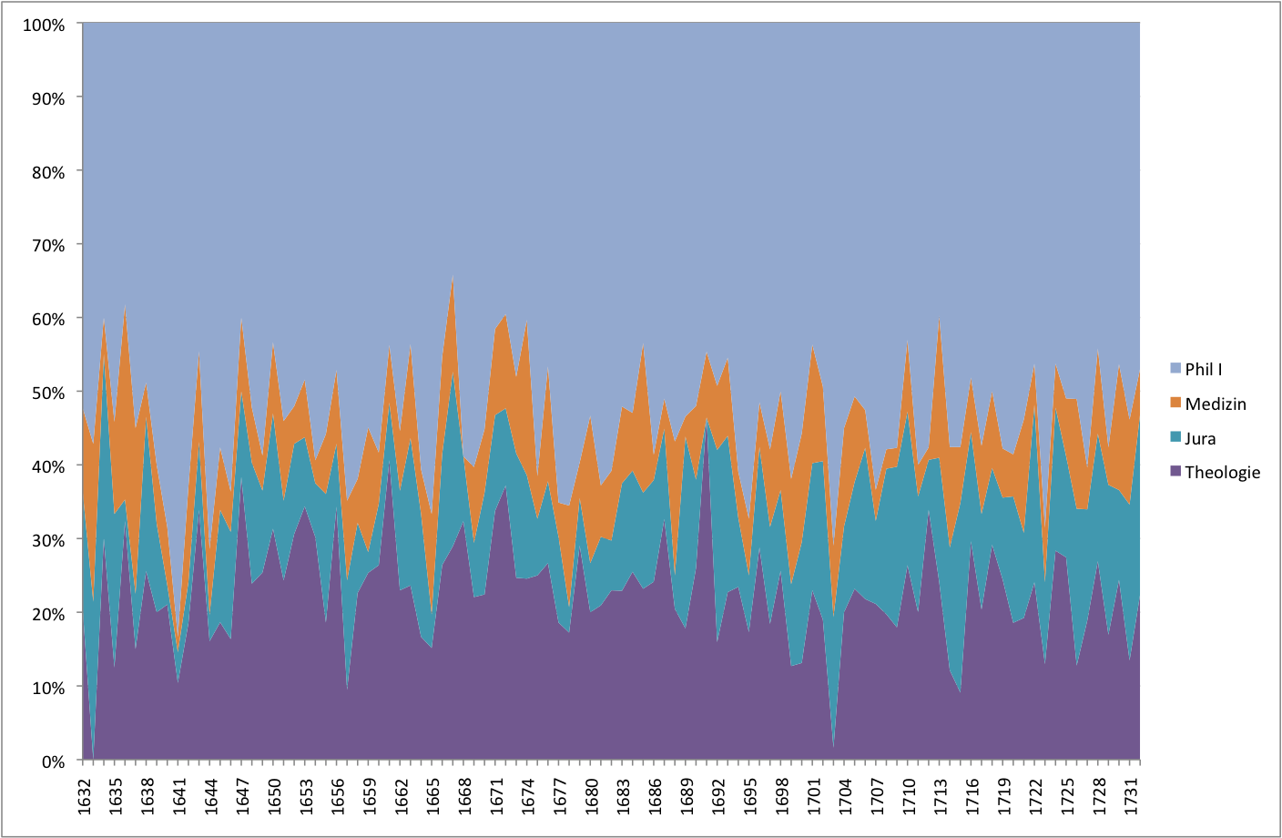 Anteile der Fakultäten an der Gesamtzahl der Studierenden 1632-1732