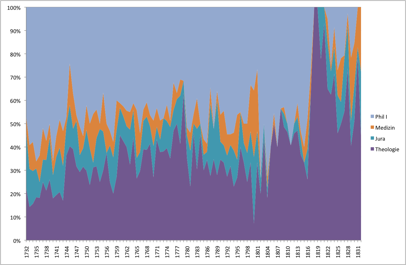 Anteile der Fakultäten an der Gesamtzahl der Studierenden 1732-1832