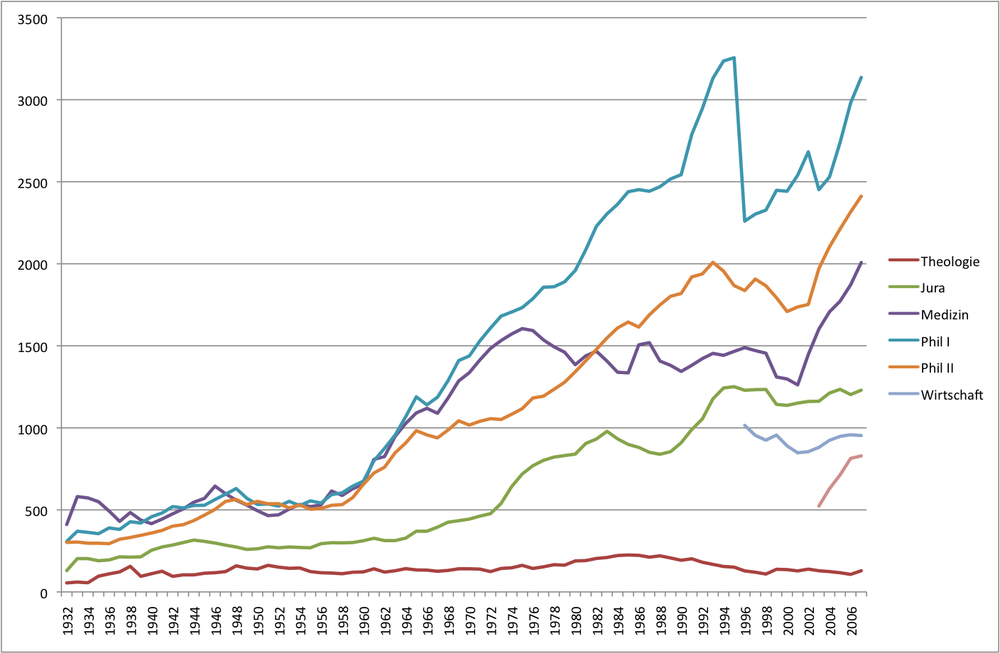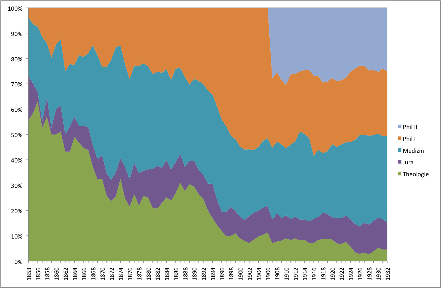 Anteile der Fakultäten an der Gesamtzahl der Studierenden 1854-1932