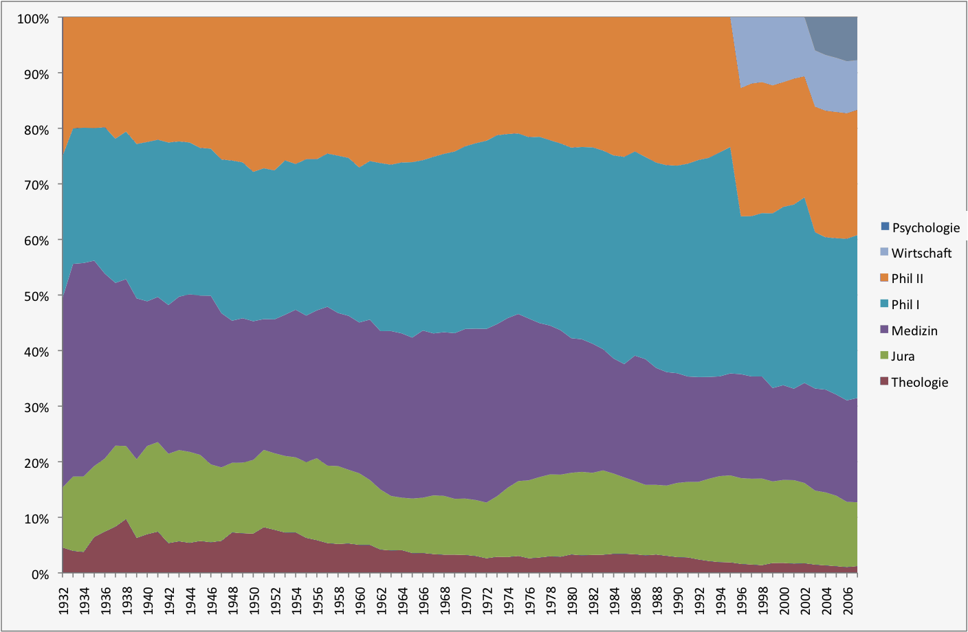 Anteile der Fakultäten an der Gesamtzahl der Studierenden 1932-2007